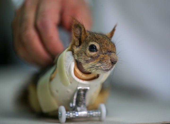 Karamel is believed to be the first squirrel to be given prosthetics.
