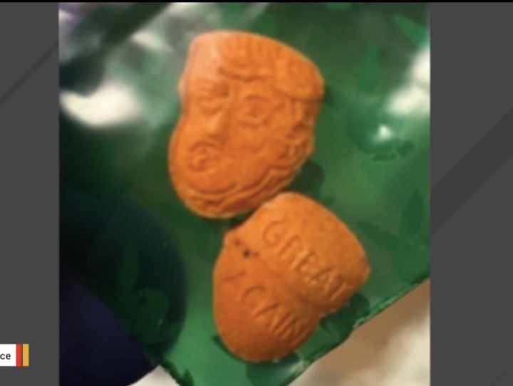 But the most eye-catching find was orange ecstasy pills shaped like Trump’s head. One side featured the face of the president. The other was stamped with the words “Great Again.”