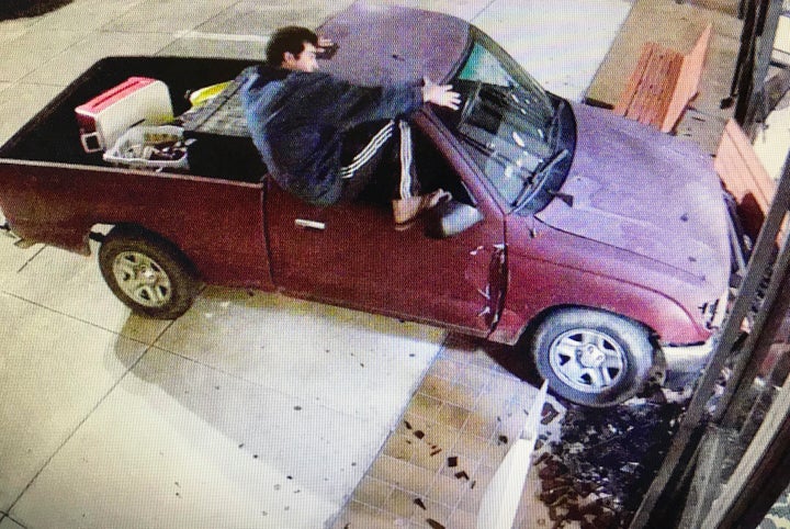 The footage shows the bear step into the commercial vehicle enforcement facility in Truckee, near Lake Tahoe, then drop down to all fours. It wanders past some vending machines and out of camera range.