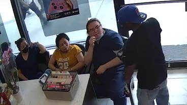 Although the man shouted, “Everybody get down! Give me all your money!” surveillance video shows he was ignored by both customers and employees.